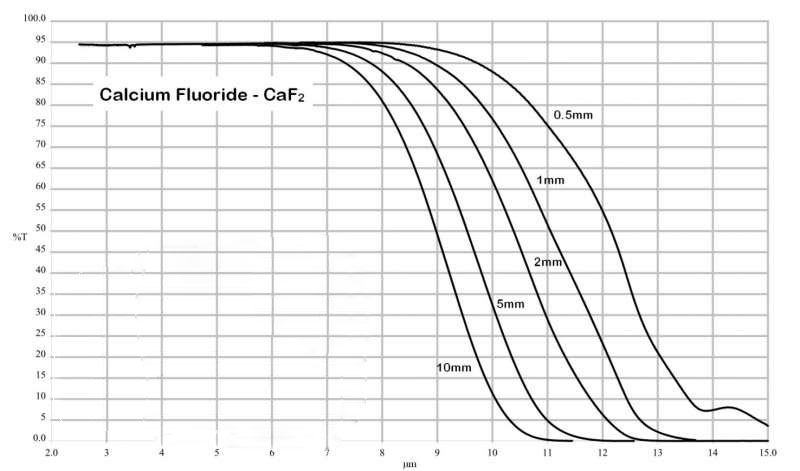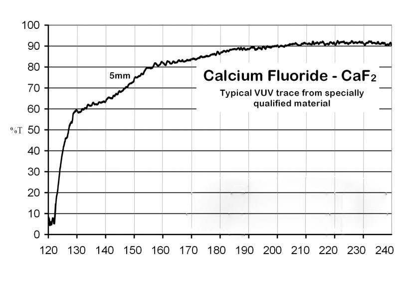 Calcium Fluoride has widespread IR application as spectroscopic CaF2 windows, CaF2 prisms and CaF2 lenses. Especially pure grades of Calcium Fluoride (CaF2) find useful application in the UV and as UV Excimer laser windows. Calcium Fluoride (CaF2) is available doped with Europium as a gamma-ray scintillator.