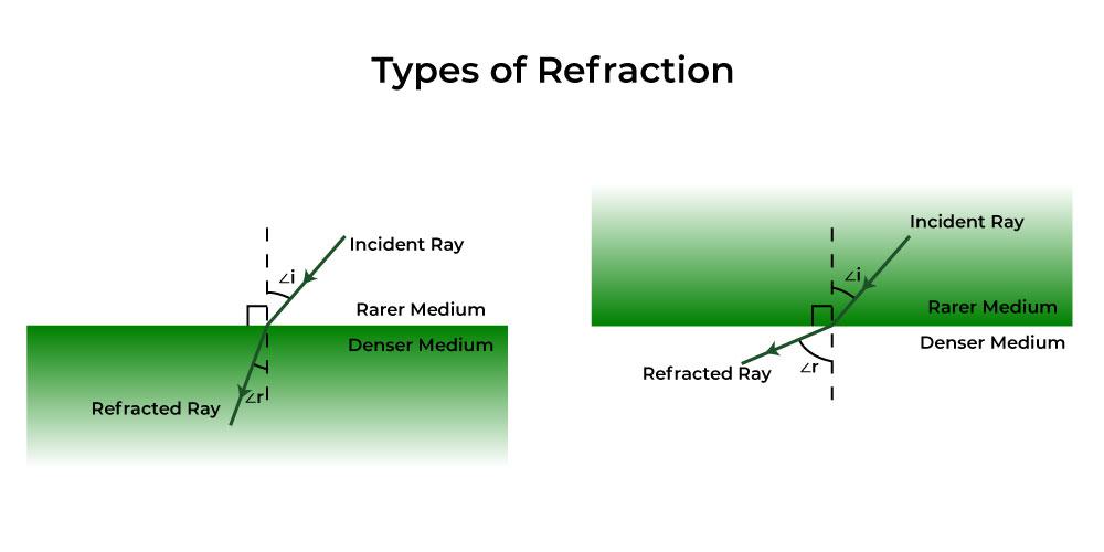 To take a more in-depth discussion into the idea of Snell’s Law and refraction, there’s also the concept of the Critical Angle and Total Internal Reflection (TIR). The critical angle is the angle of incidence where the angle of refraction is 90°. Total internal reflection is the physical phenomenon that occurs when the angle of incidence is greater than the critical angle and when light is propagating from a dense medium into a thin medium, in TIR, no light will be refracted into the thin medium, instead, all of the light rays will be completely reflected back into the dense medium.