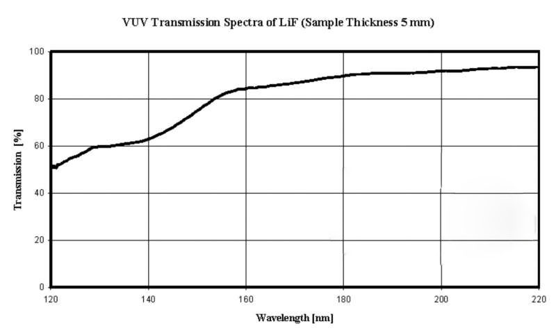 Lithium fluoride is the material with the most extreme UV transmission of all and is used for special UV optics. Lithium fluoride transmits well into the VUV region at the hydrogen Lyman-alpha line (121nm) and beyond. Lithium fluoride is also used for X-ray monochromator plates where its lattice spacing makes it the most useful analysis crystal.