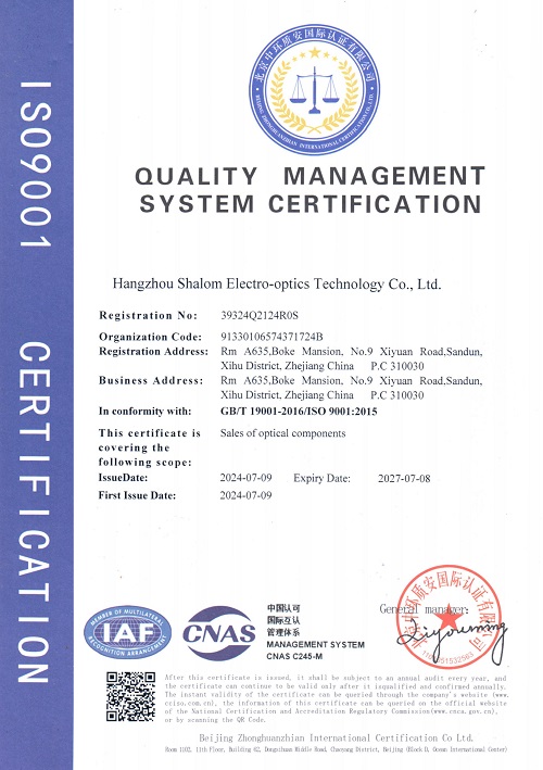 As Shalom EO’s customer, you can feel secure that your needs and expectations will always be valued. With our continuous commitment to delivering products of superior quality, Hangzhou Shalom EO strives to become your trusted and reliable partner in the electro-optical profession.